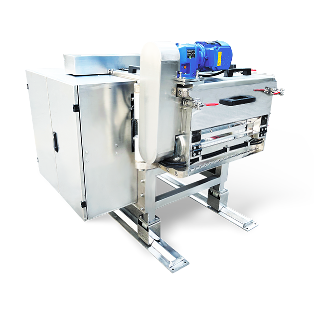 YPJ系列不銹鋼鏈板壓片機由冷卻壓輥、不銹鋼節片輸送帶、破碎和風冷系統組成。擠出機擠出的熱熔融狀物料經冷卻壓輥壓成1-2mm帶狀,在不銹鋼節片輸送帶上風冷至常溫,破碎成片狀物料排出。可選配有空氣過濾,冷熱交換系統。